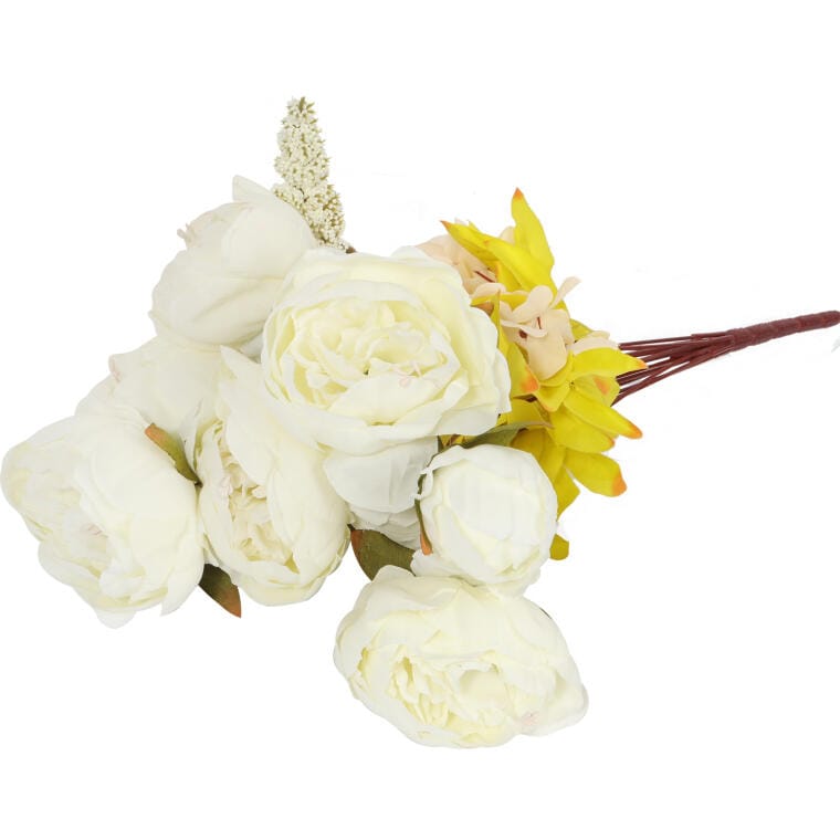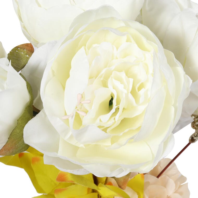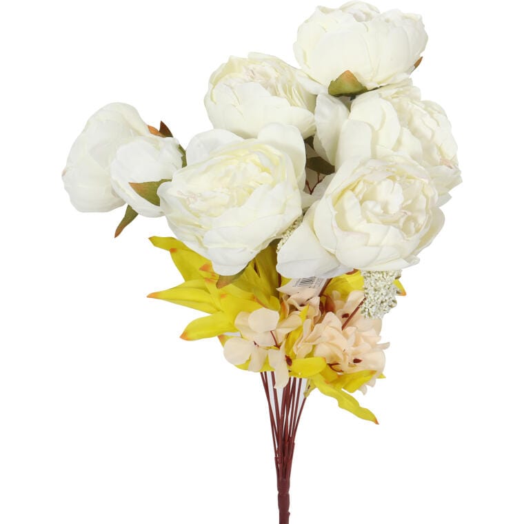Sztuczny Bukiet Białych Piwonii z Dodatkami – 13 Gałązek, Wysokość 55 cm
