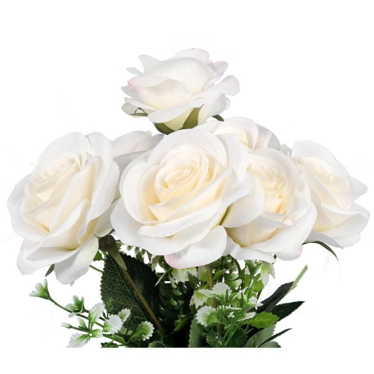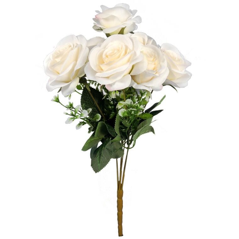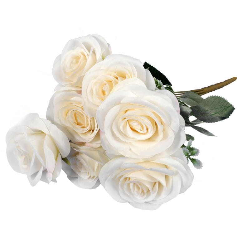 Sztuczny Bukiet Białych Róż 45cm – 7 Sztuk Wyglądających Jak Żywe