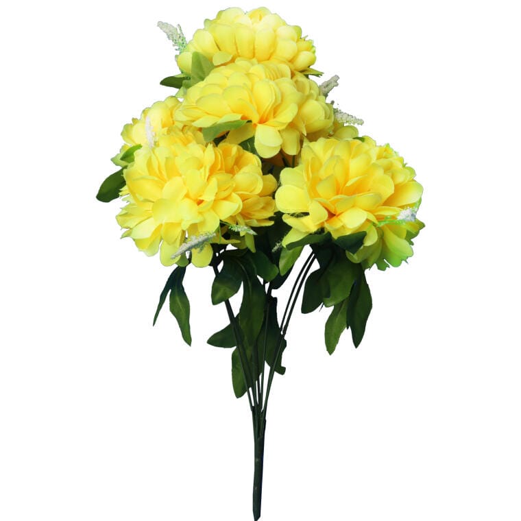 Sztuczny Bukiet Żółtych Chryzantem z Gipsówką – Dekoracja Cmentarna, Wysokość 54cm