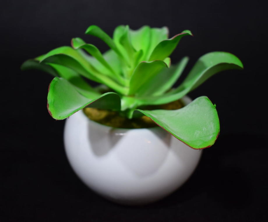 Sztuczny sukulent w białej ceramicznej osłonce