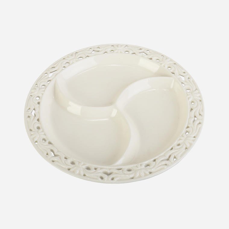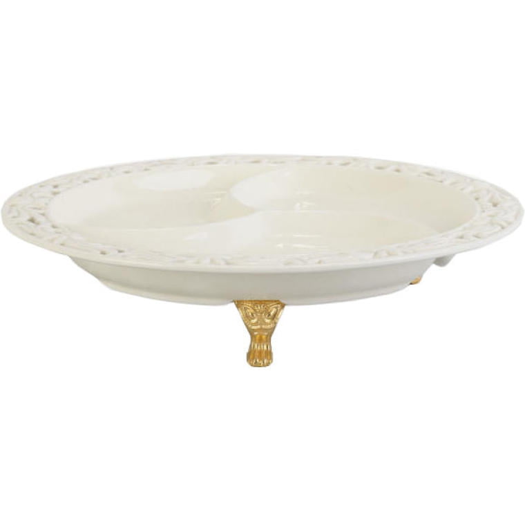 Talerz Ceramiczny z Przegrodami na Złotych Nóżkach 24 cm – Kolekcja Koronkowa
