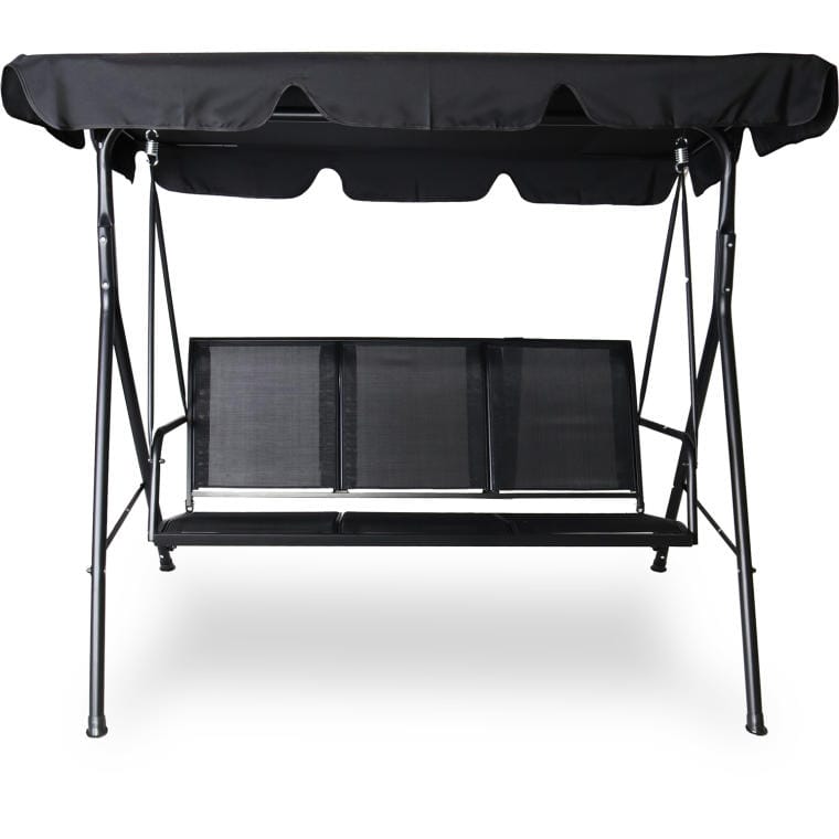 Trzyosobowa Huśtawka Ogrodowa z Regulowanym Dachem i Wytrzymałą Siatką Textilene, Kolor Czarny