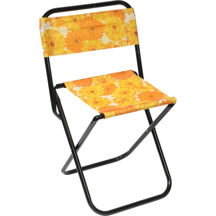 Turystyczne Składane Krzesło w Żółte Kwiaty z Prostym Mechanizmem Otwierania