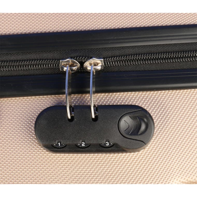 Walizka wyposażona jest w zamek szyfrowy, który blokuje suwaki, zapewniając dodatkowe bezpieczeństwo. Mocny wbudowany stelaż gwarantuje stabilność, a dwa dodatkowe uchwyty ułatwiają przenoszenie bagażu. Metalowe łożyska oraz stopki chronią walizkę przed bezpośrednim kontaktem z podłożem, a łagodne narożniki zapobiegają uszkodzeniom.
