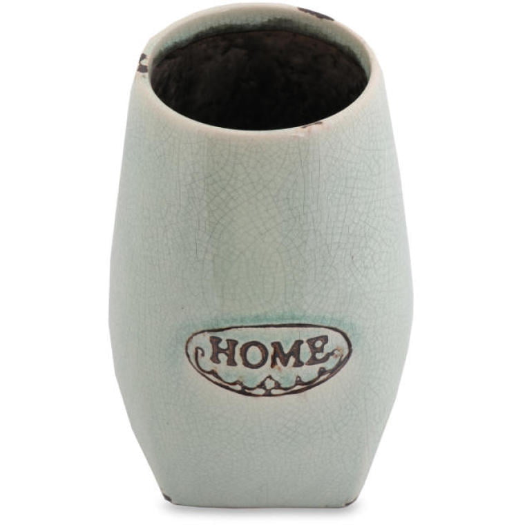 Ceramiczny wazon o wysokości 18 centymetrów to zachwycający element dekoracyjny, który doskonale wpasuje się w każde wnętrze, dodając mu wyjątkowego charakteru. Jego delikatny, stonowany kolor mięty i zieleni sprawia, że wazon idealnie harmonizuje zarówno z żywymi, jak i sztucznymi kwiatami, a także może stanowić samodzielną ozdobę. Wykonany w starym stylu, wazon charakteryzuje się unikalnymi przetarciami i pęknięciami, co nadaje mu wyjątkowego uroku oraz autentyczności. Dodatkowo, piękny napis „Home” stylizowany stemplem podkreśla jego oryginalność i nadaje mu osobistego charakteru. Ten wazon to doskonały wybór dla osób ceniących sobie estetykę i oryginalność w aranżacji wnętrz.