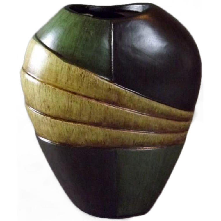 Wazon ceramiczny w kolorach ciemnej zieleni i beżu 21x18x9 cm