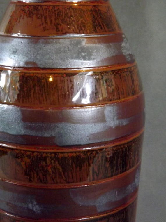 Wazon ceramiczny w kolorze piaskowym ciężki w pasy 38×20 cm