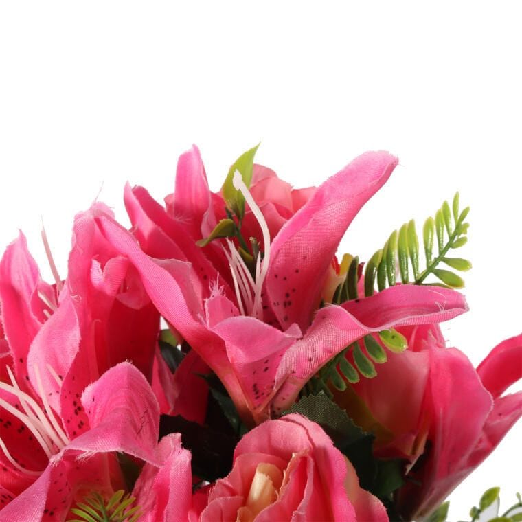 Bukiet 12 kwiatów mix róża z lilią kolor CIEMNO RÓŻOWY