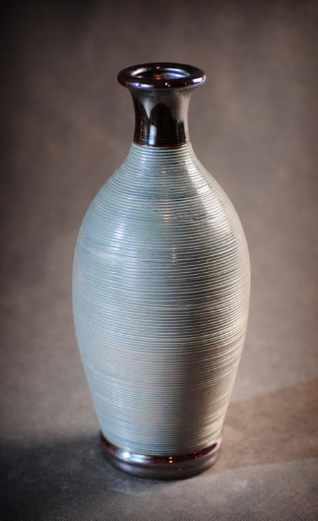 Wazon popielaty z grafitowymi wykończeniami duży 14x14x31,5 cm