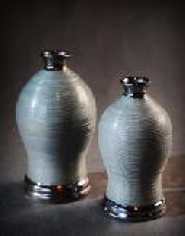 Wazon popielaty z grafitowymi wykończeniami mniejszy 13x13x24,5 cm