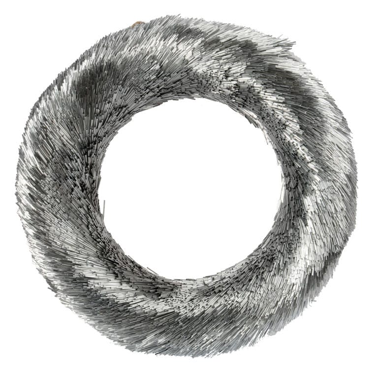 Wianek stroik z materiału przypominającego elegancką, srebrną słomę to wyjątkowa dekoracja, która doda blasku i świątecznej atmosfery każdemu wnętrzu. Dzięki swojemu oryginalnemu designowi doskonale nadaje się do przystrojenia drzwi, okien, kominków czy ścian, wprowadzając magiczny klimat Bożego Narodzenia. Ten dekoracyjny wianek świetnie sprawdzi się również jako elegancki dodatek do stołu, będąc idealnym elementem wszelkiego rodzaju kompozycji florystycznych. Jego srebrna kolorystyka nadaje mu stylowy i nowoczesny charakter, który świetnie wpisuje się w świąteczne dekoracje. Może być także doskonałym prezentem dla bliskiej osoby, łącząc estetykę z funkcjonalnością.