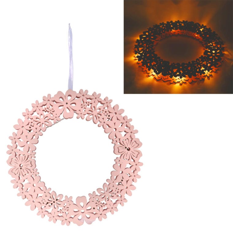 Wielkanocny wianek z oświetleniem LED to idealna dekoracja, która wprowadzi do Twojego domu radosny świąteczny nastrój. Wykonany z naturalnego drewna w subtelnym różowym kolorze, wianek doskonale sprawdzi się zarówno w pokoju dziecięcym, jak i w salonie czy sypialni, a także w ogrodzie.