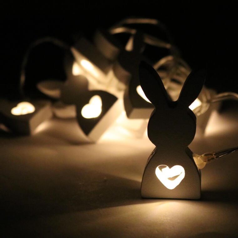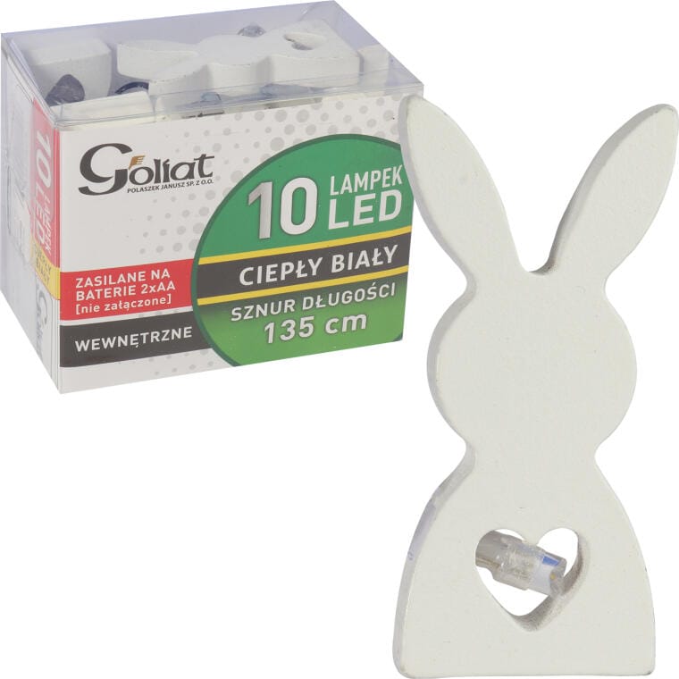 Wielkanocna Girlanda świetlna z Białymi Zającami LED 10 szt. na baterie, ozdoba do domu i ogrodu