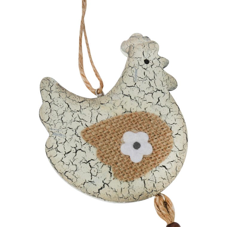 Wielkanocna Kura Zawieszka Drewniana w Odcieniu Brązu z Tasiemkami