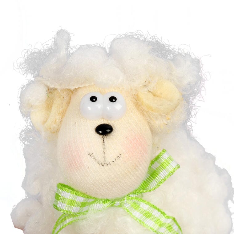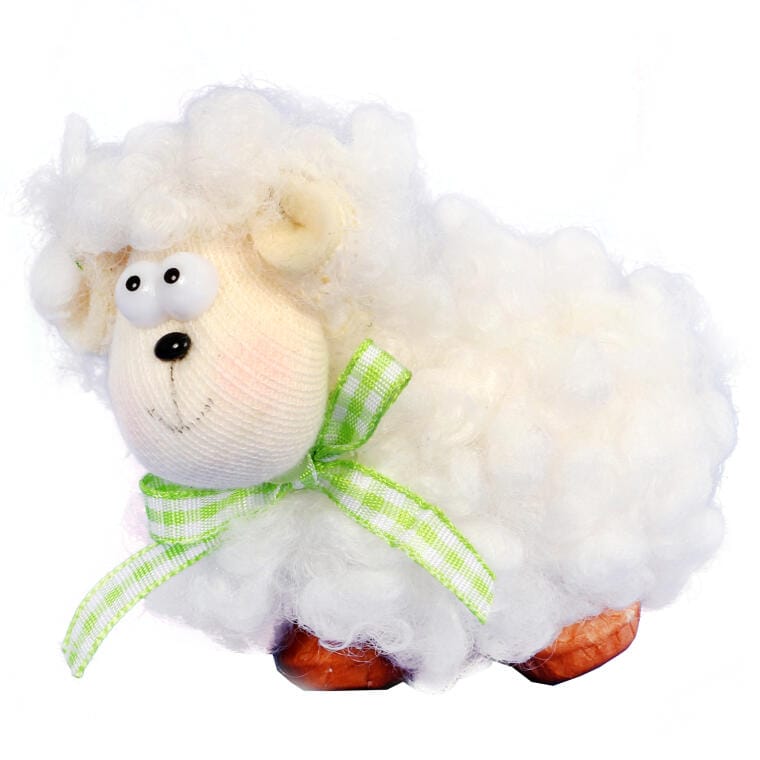 Wielkanocny Baranek dekoracyjny z Wełny z Zieloną Wstążką – 10cm
