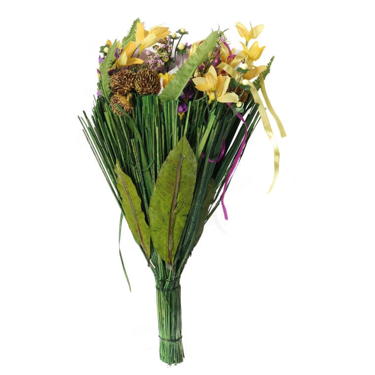 Wiosenna kompozycja z suszu z dodatkiem dekoracyjnych jajek to wyjątkowy bukiet, który doda świeżości i kolorów każdemu wnętrzu. Stworzony w harmonijnych odcieniach zieleni, fioletu i żółci, ten piękny bukiet o długości 35 cm doskonale oddaje radosnego ducha wiosny. Wykorzystanie naturalnych materiałów sprawia, że kompozycja jest trwała i efektowna, idealnie sprawdzi się jako dekoracja stołu, parapetu czy innego miejsca w domu. Dzięki unikalnemu połączeniu kolorów i elementów, ten bukiet może być również doskonałym akcentem na różnorodne okazje, w tym na Święta Wielkanocne czy inne wiosenne uroczystości. Wybierz tę kompozycję, aby wnieść do swojego otoczenia odrobinę radości i naturalnego piękna, które przetrwa przez długi czas.