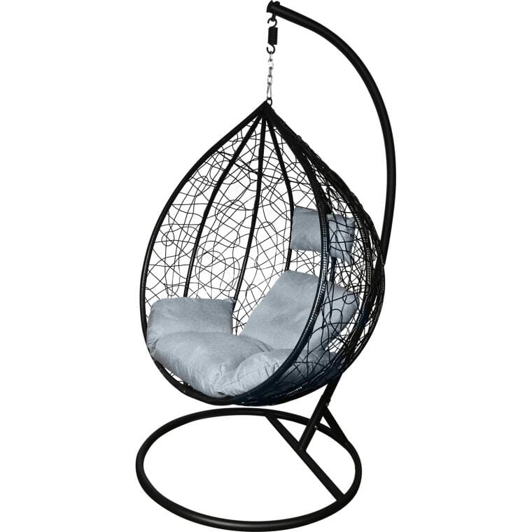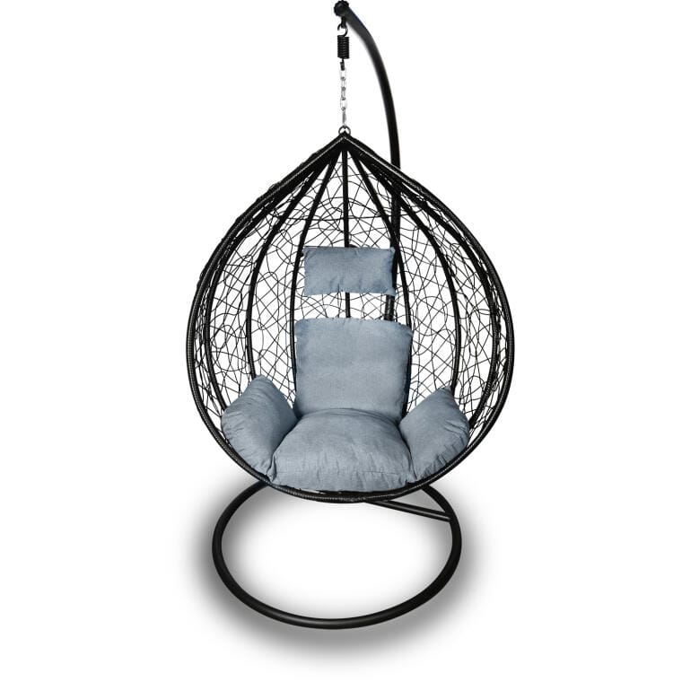 Wiszący Fotel Ogrodowy Kokon F-03-BL Szary z Poduszkami i Stalowym Stelażem