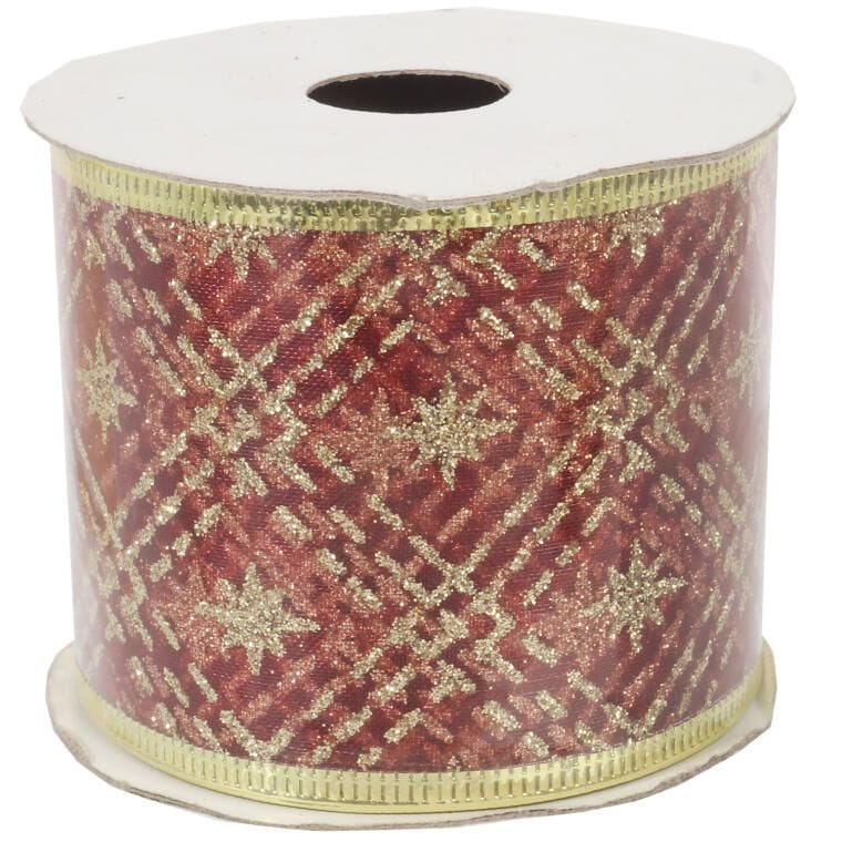Wstążka dekoracyjna 6.5 cm na szpuli bordowa