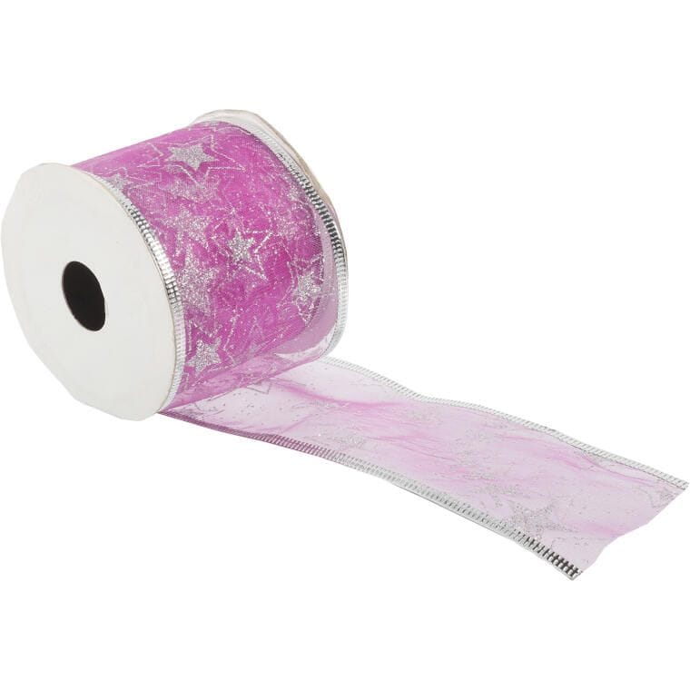 Wstążka dekoracyjna 6.5 cm na szpuli jasny róż