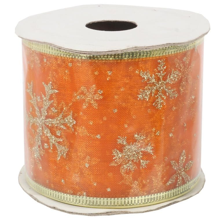 Wstążka dekoracyjna 6.5 cm na szpuli pomarańczowa