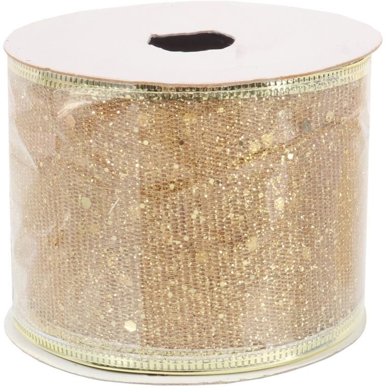Wstążka dekoracyjna 7 cm na szpuli złota
