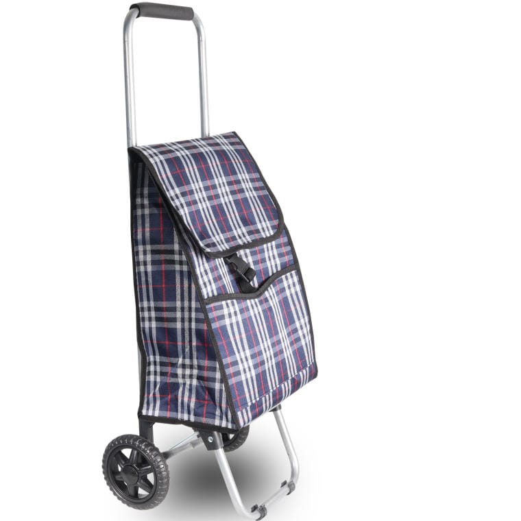 Wysokiej Jakości Wózek na Zakupy z Torbą na Kółkach w Kolorze Granatowym z Kratką