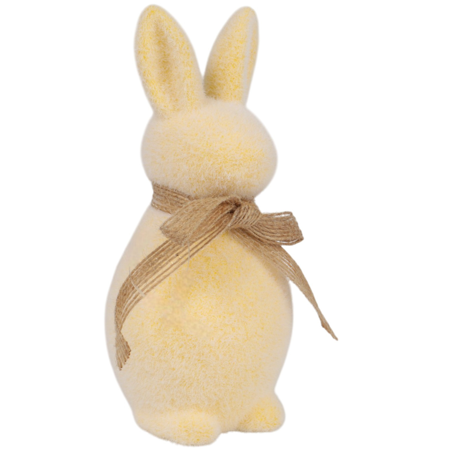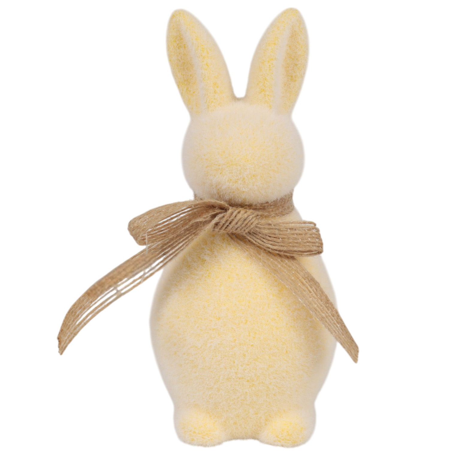 ZAJĄCZEK ZAJĄC FLOKOWANY KRÓLIK WIELKANOCNY ZE WSTĄŻKĄ 15 CM