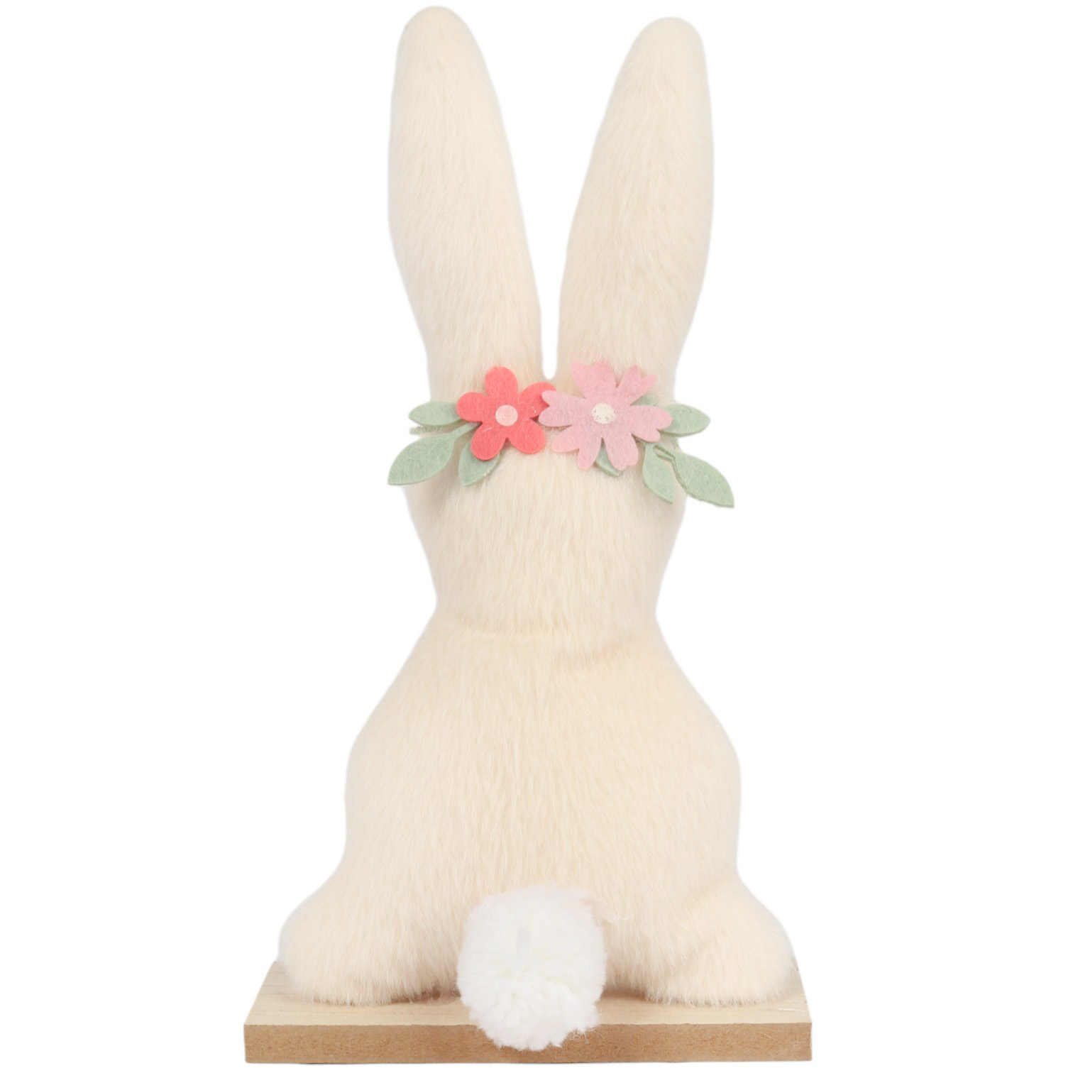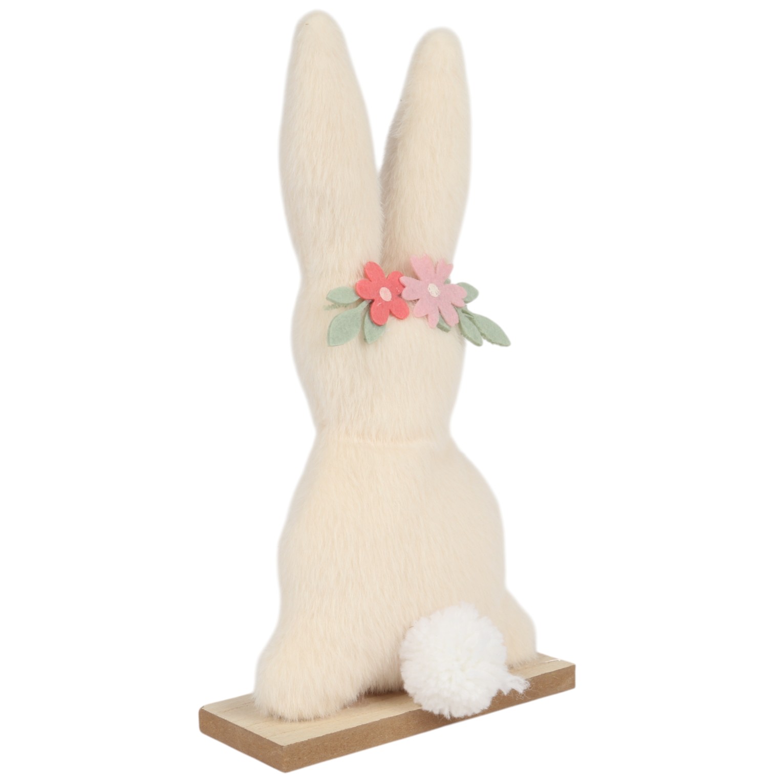 ZAJĄCZEK ZAJĄC FUTERKOWY KRÓLIK WIELKANOCNY NA DREWNIANEJ PODSTAWIE z dekoracją 25 CM