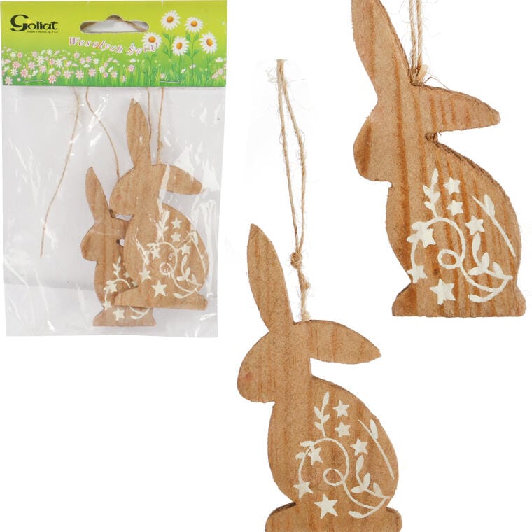 Zestaw drewnianych zawieszek w kształcie dwóch zajączków to urokliwa ozdoba, która wprowadzi oryginalny, wiosenno-świąteczny klimat do Twojego otoczenia. Zając o wielkości 10 cm oraz jego mniejszy odpowiednik o wymiarze 7 cm to doskonałe akcenty dekoracyjne, które ożywią każde wnętrze. Te drewniane zawieszki świetnie sprawdzą się w aranżacjach wielkanocnych, wnosząc do domu radość i kolor. Wykorzystaj je jako element dekoracyjny w oknie, na drzwiach, lub w wiosennych stroikach, tworząc przytulną atmosferę. Zające będą również doskonałym pomysłem na prezent, który zachwyci bliskich i doda uroku świątecznym dekoracjom. Wybierz zawieszki drewniane, aby nadać swojemu wnętrzu wyjątkowego charakteru i świątecznej radości.