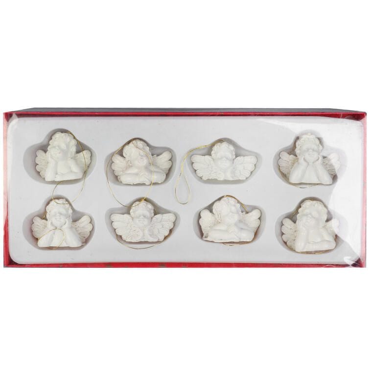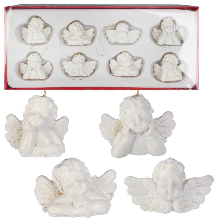 Zawieszki na choinkę Białe Aniołki – 8 sztuk, Polirezyna, 3.5×5 cm, Przeznaczone do Dekoracji Świątecznej