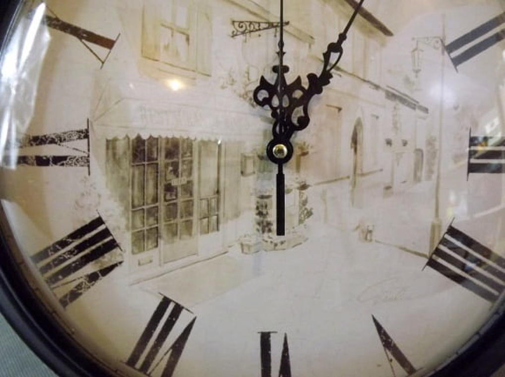 Zegar wiszący w czarnej ramie budynek 34 cm