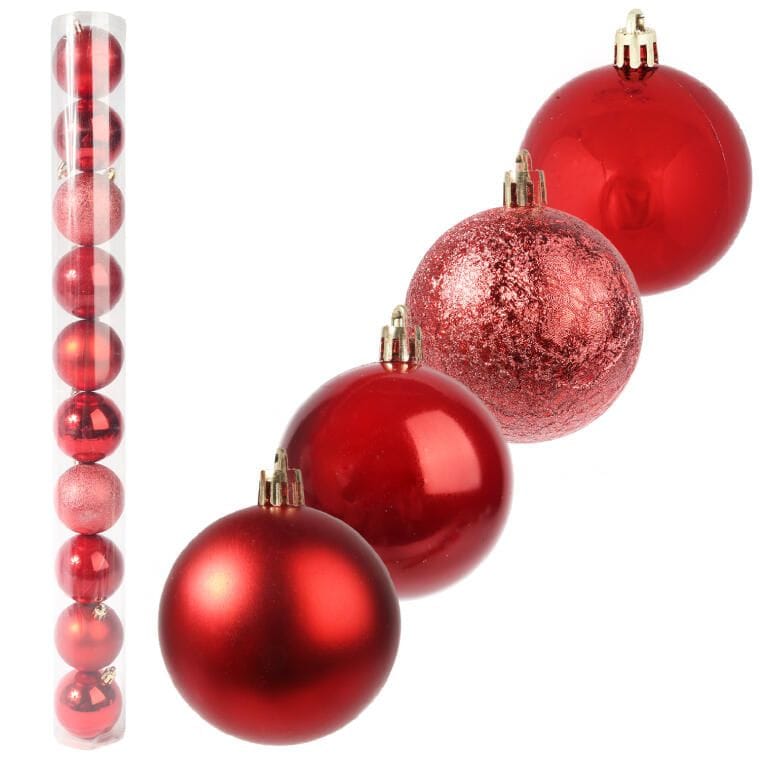 Zestaw 10 Czerwonych Plastikowych Bombek Świątecznych 6 cm w Tubie