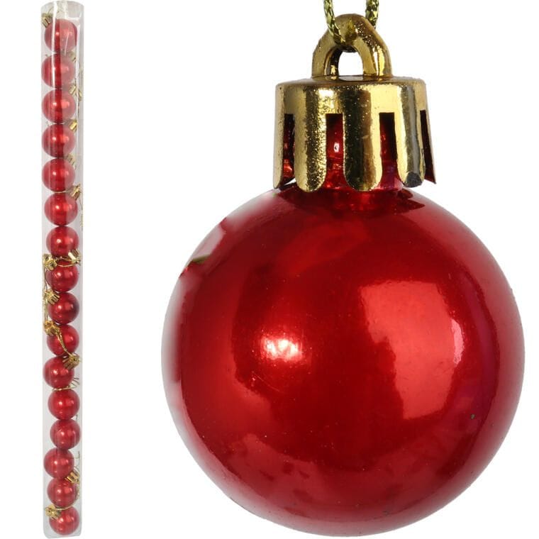 Zestaw 16 bombek plastikowych w tubie 3 cm czerwone