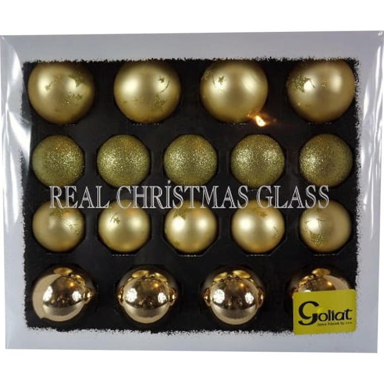 Zestaw 18 Eleganckich Złotych Bombek Szklanych o Różnych Wielkościach i Fakturach