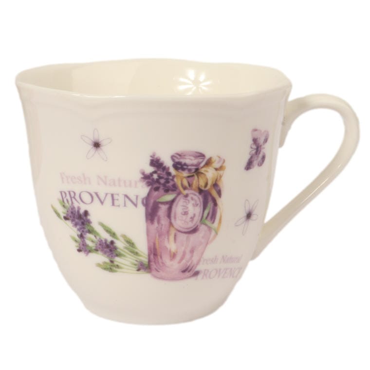 Zestaw 2 filiżanek i 2 talerzyków ceramicznych z fioletowym wazonem w prezentowym opakowaniu