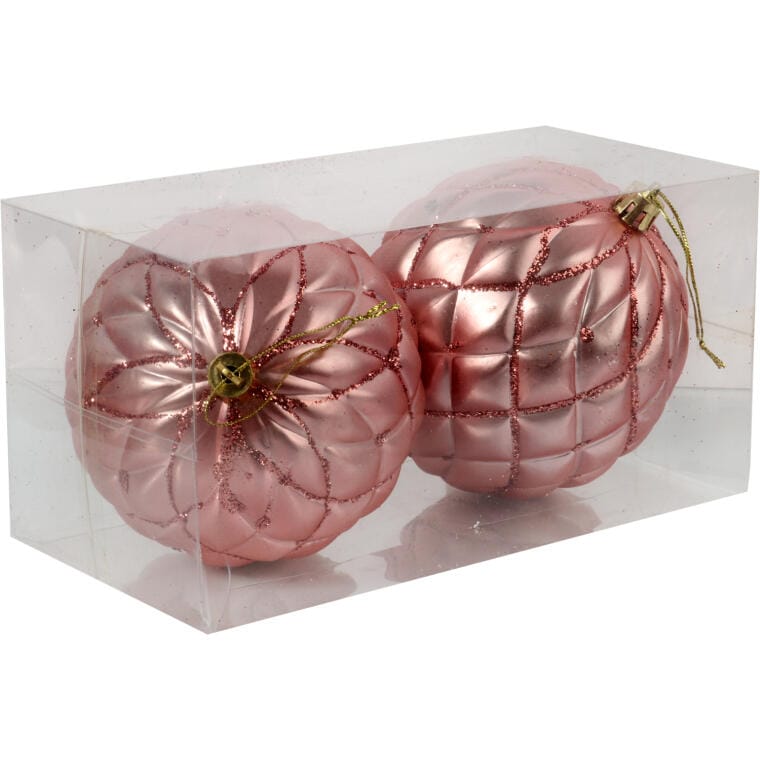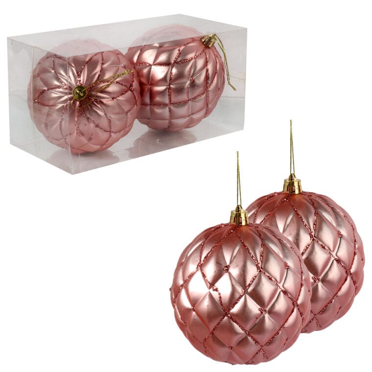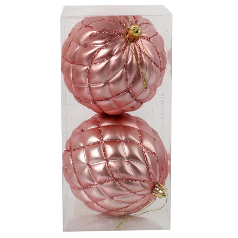 Zestaw dwóch dekorowanych bombek plastikowych to doskonały wybór, jeśli chcesz dodać swojej świątecznej aranżacji subtelnej elegancji. Delikatny, łososiowo-różowy kolor idealnie komponuje się z innymi świątecznymi ozdobami, wprowadzając ciepły i przytulny nastrój. Te stylowe dekoracje sprawdzą się zarówno na choince, jak i w stroikach czy świątecznych kompozycjach. Wielkość 10 cm czyni je świetnym dodatkiem do każdego wnętrza, nadając mu wyjątkowy, świąteczny klimat.