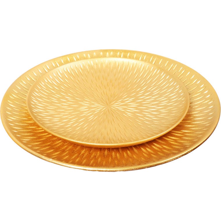Zestaw 2 Złotych, Drewnianych Tac Okrągłych o Średnicy 40 cm i 30 cm
