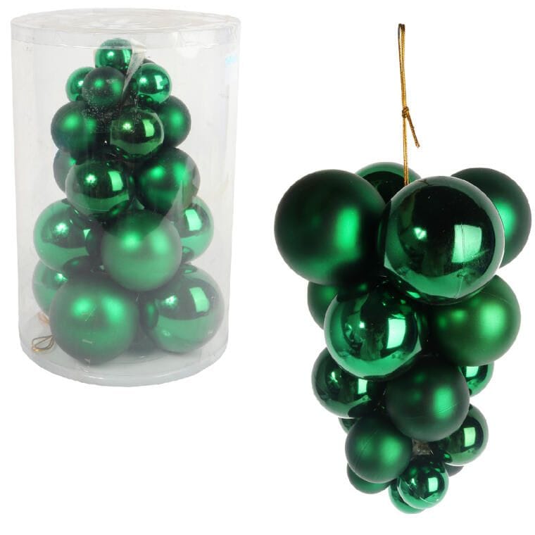 Zestaw 21 Bombek na Kiści – Plastikowe Ozdoby Świąteczne 28 cm – Kolor Zielony
