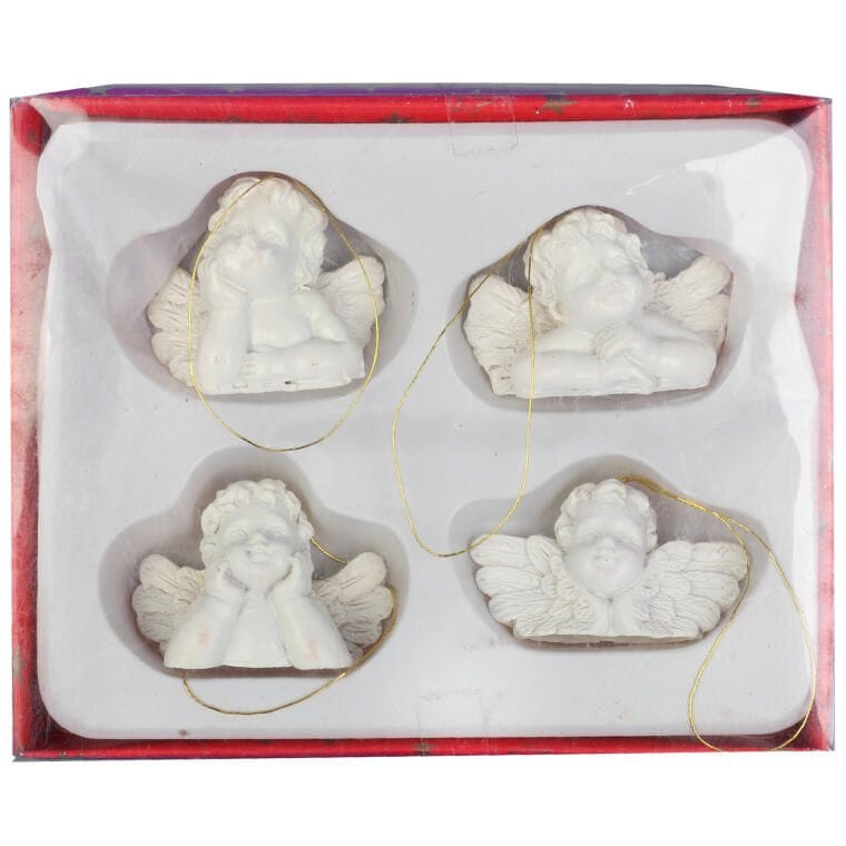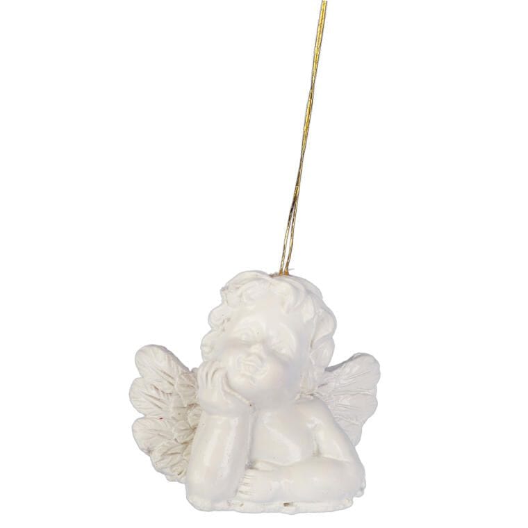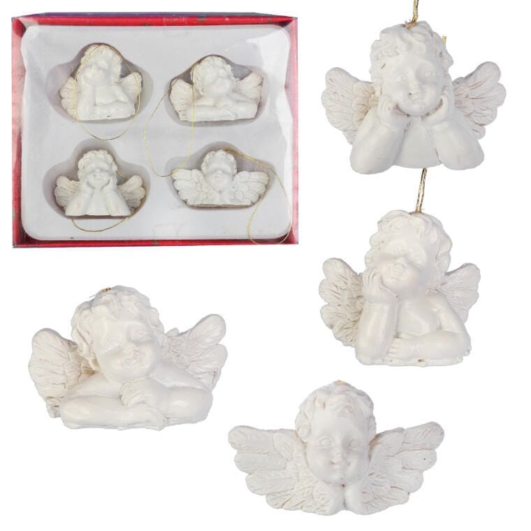 Zestaw 4 Białych Zawieszek Aniołków z Polirezynu 3.5×5 cm – Dekoracja Bożonarodzeniowa