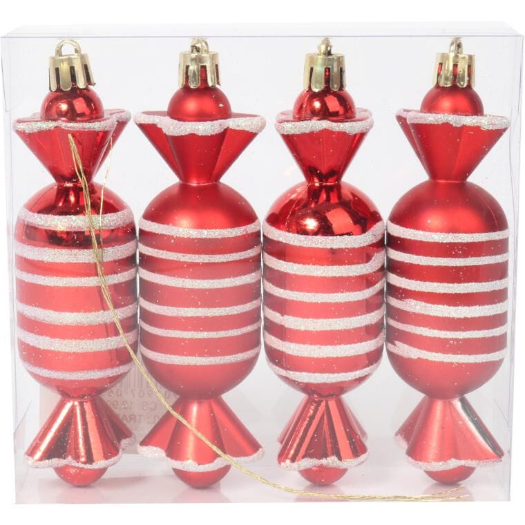 Zestaw 4 bombek plastikowych – cukierki czerwone 12.5 cm