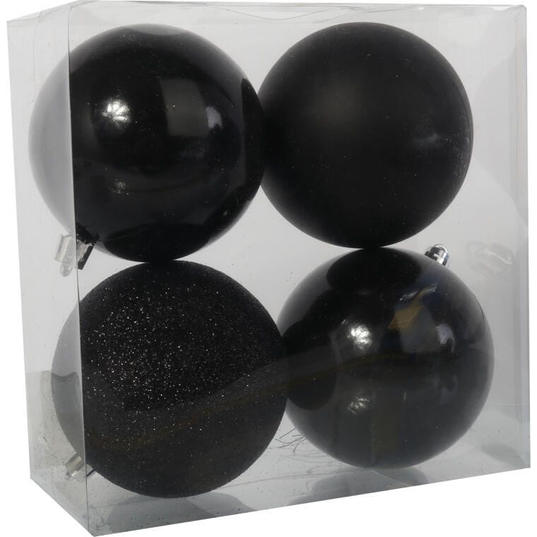 Zestaw 4 Czarnych Bombek Plastikowych 8cm w Przezroczystym Pudełku