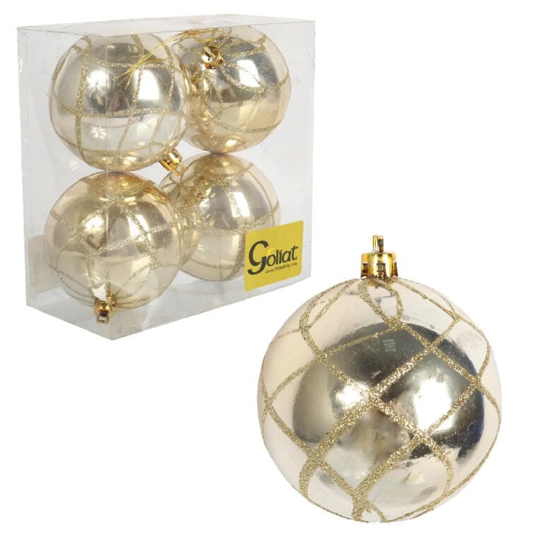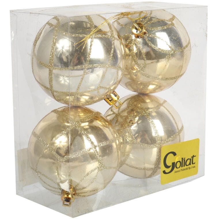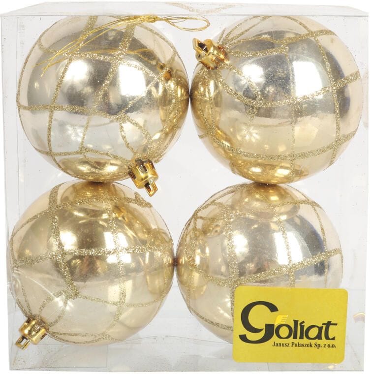 Zestaw 4 Plastikowych Bombek Bożonarodzeniowych 8cm – Złote z Brokatowym Dekorem