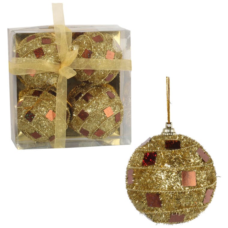 Komplet 4 złotych bombek styropianowych zdobionych brązowymi szkiełkami to wyjątkowa dekoracja świąteczna, która doskonale sprawdzi się na choinkach, girlandach i stroikach, dodając elegancji każdej aranżacji. Te pięknie zdobione bombki w złotym kolorze, o średnicy 7 cm, natychmiast wprowadzają świąteczny blask do Twojego otoczenia. Brązowe szkiełka dodają subtelnego kontrastu, tworząc efektowny i wyrafinowany akcent w każdej kompozycji. Idealne do podkreślenia wyjątkowego charakteru świąt, te bombki świetnie sprawdzą się zarówno w nowoczesnych, jak i tradycyjnych aranżacjach.