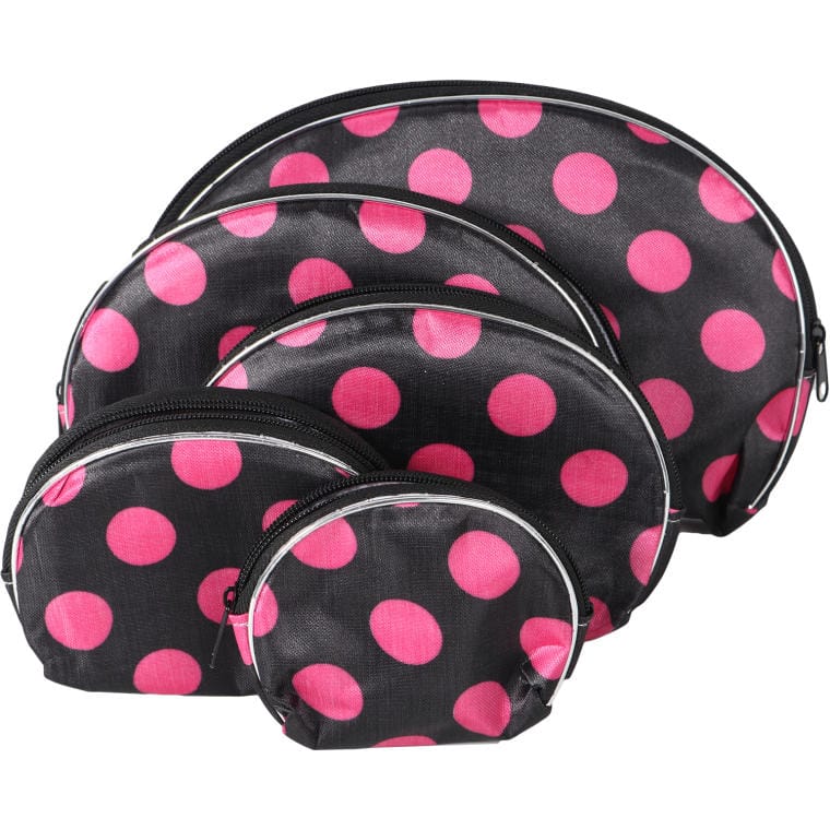 Zestaw 5 kosmetyczek w kolorze czarnym w różowe kropki