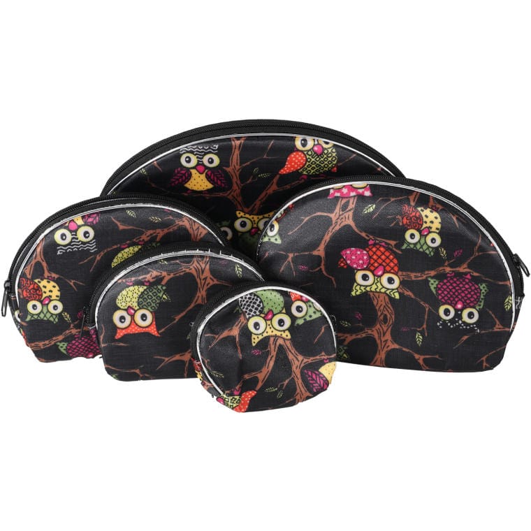 Zestaw 5 kosmetyczek w kolorze czarnym z kolorowymi sowami