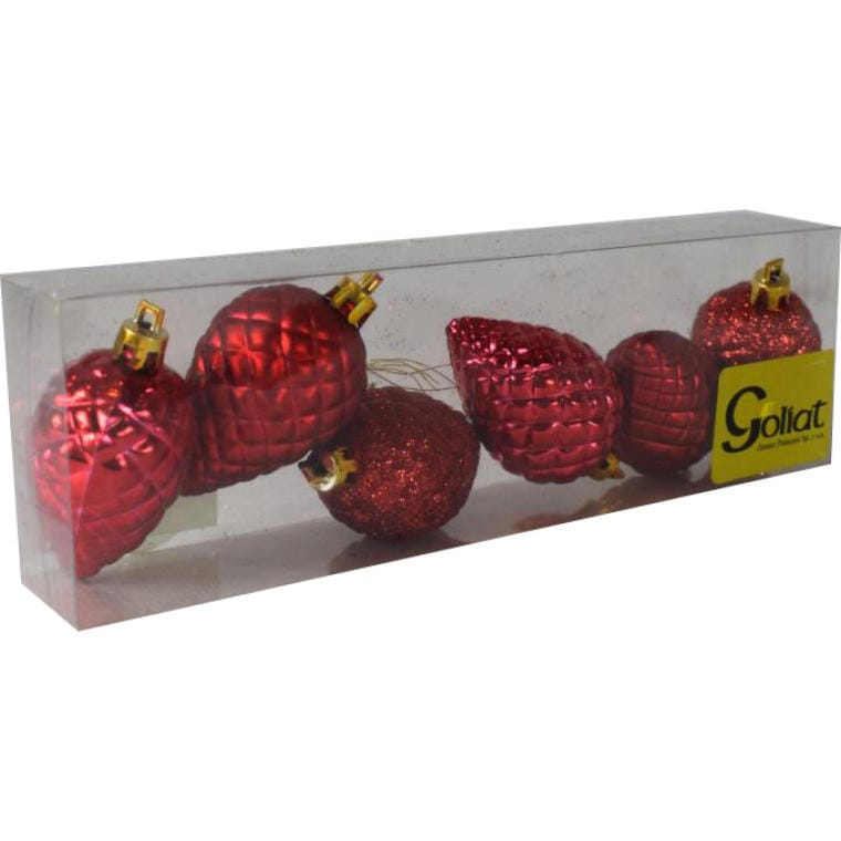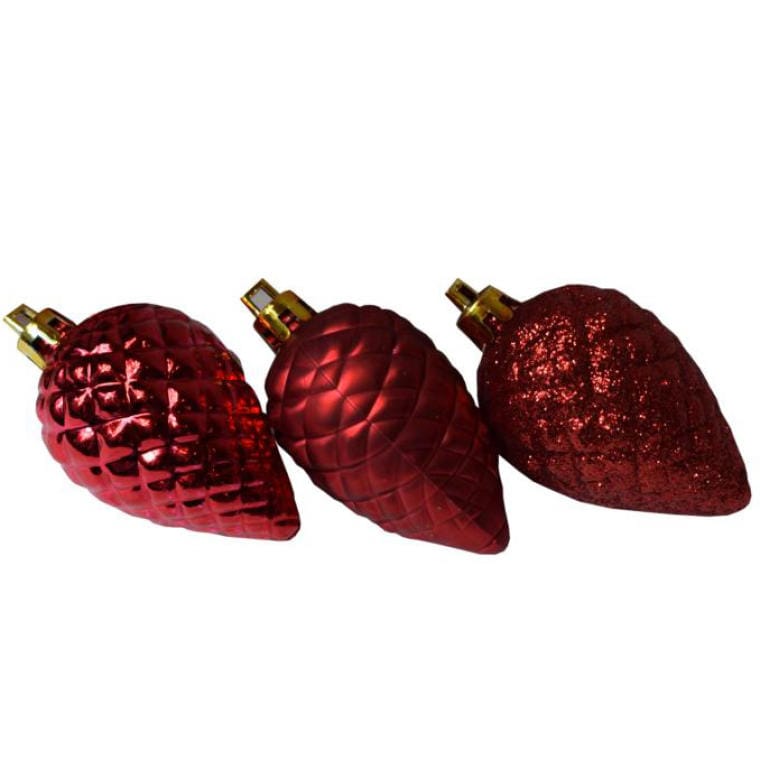 Zestaw 6 Czerwonych Bombek Choinkowych w Kształcie Szyszek – Mix Mat i Połysk