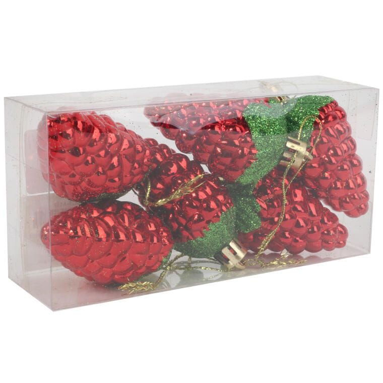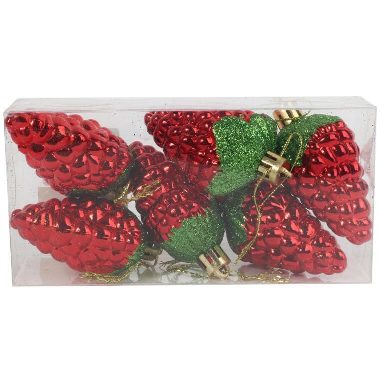 Zestaw 6 Czerwonych Bombek w Kształcie Poziomek, 7 cm, Plastikowych