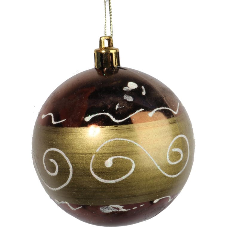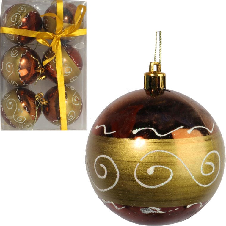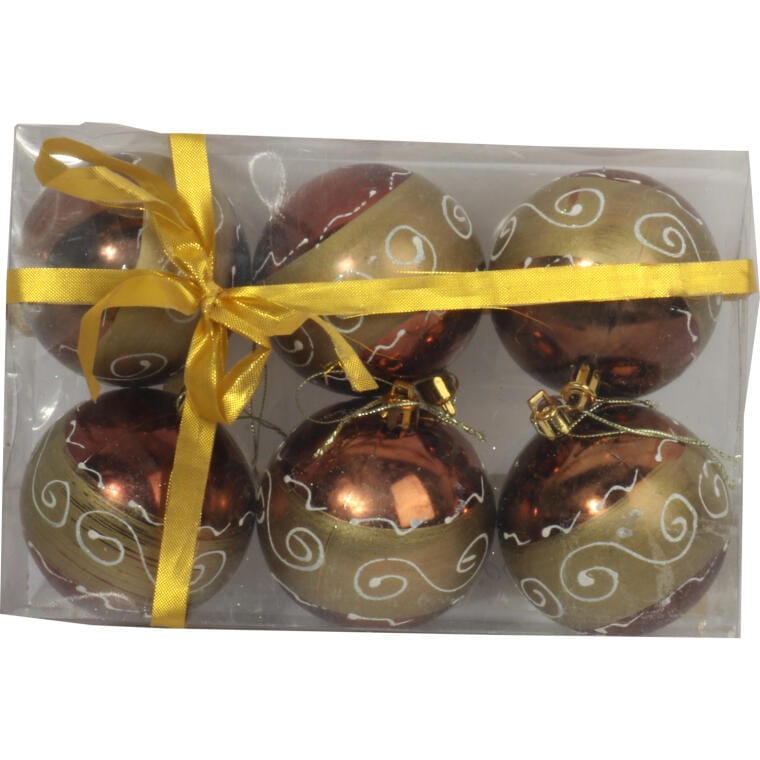 Bombki 6 sztuk plastikowe z dekorem Bombki plastkowe w kolorze brązowym z dekorem, to świetny i bardzo elegancki element do dekoracji bożonarodzeniowego drzewka, które przyciągnie wzrok i zachwyci klimatem. Roztoczy aurę wyjątkowych, rodzinnych świąt, a ta doskonale przeniknie do wszystkich domowników i gości. Bombki plastikowe o bardzo starannym wykonaniu. Zastosowanie takiego materiału jest alternatywą dla klasycznych, szklanych ozdób, które nie są tak trwałe i odporne na zniszczenie. Wysokość: 7 cm Opakowanie: 6 sztuki Kolor: brązowy