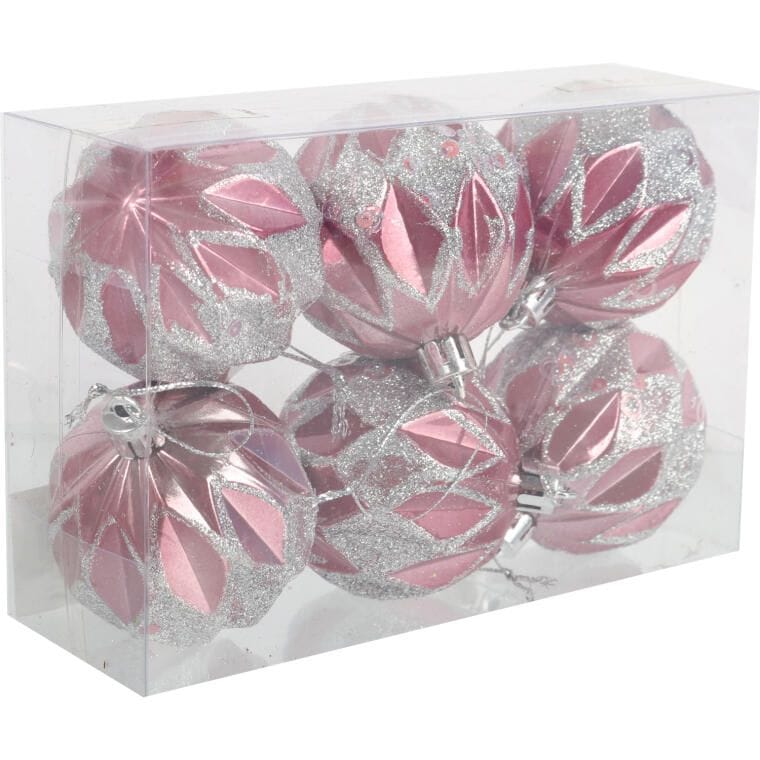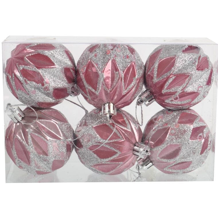 Zestaw 6 Eleganckich, Plastikowych Bombek Bożonarodzeniowych 6 cm – Kolor Różowy