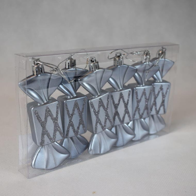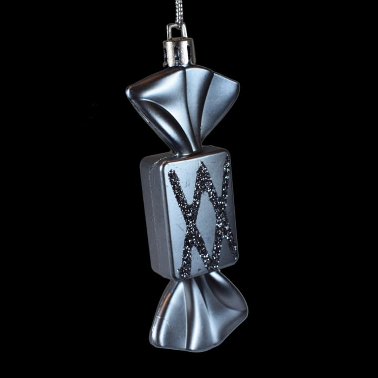 Zestaw 6 Grafitowych Ozdób Choinkowych w Kształcie Cukierka z Brokatem